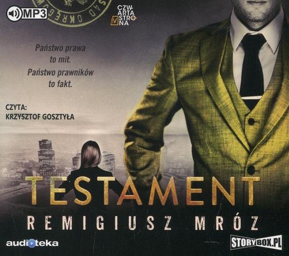 Testament / Remigiusz Mróz. - [Warszawa] : Audioteka ; [Piaseczno] : Heraclon International. Story Box.pl ; [Poznań] : Czwarta Strona, [2018]. - 1 płyta audio (CD) (12 godz. 54 min) : zapis cyfrowy, stereo. ; 12 cm.