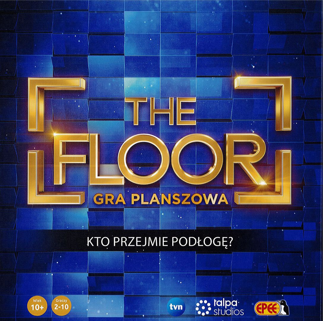 The Floor [Gra planszowa] / opracowana przez Talpa Studios i dalej rozwijana oraz wyprodukowana przez Indentity Games. - Szczecin : Epee Polska, 2025. - 1 plansza do gry (dalej też jako: Podłoga), (5x25 żetonów uczestników, 100 dwustronnych kart kategorii, 23 karty wyzywającego , 23 karty wyzwanego) :pudełko 25x25x5 cm , Instrukcja ([4] strony : ilustracje kolorowe ; 25 cm).