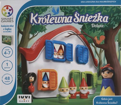 Gra w polskiej wersji językowej. Znana i lubiana baśń na planszy! Poznaj "Śpiąca Królewnę" - bajkową grę logiczną, w której dziecko ćwicząc zdolności manualne i koncentrację, zmierzy się z 48 wyzwaniami o narastającym poziomie trudności. Obracając trójwymiarowy domek i rozwiązując kolorowe zagadki, mały gracz samodzielnie, lub z rodzicem, wkroczy w baśniowy świat. Pomóż krasnoludkom i królewnie znaleźć się w odpowiednich pokojach, a kto wie, może nawet spotkasz złą wiedźmę! Nauka przez zabawę, to wspólna cecha wszystkich Smartów! Poznaj je już dziś!