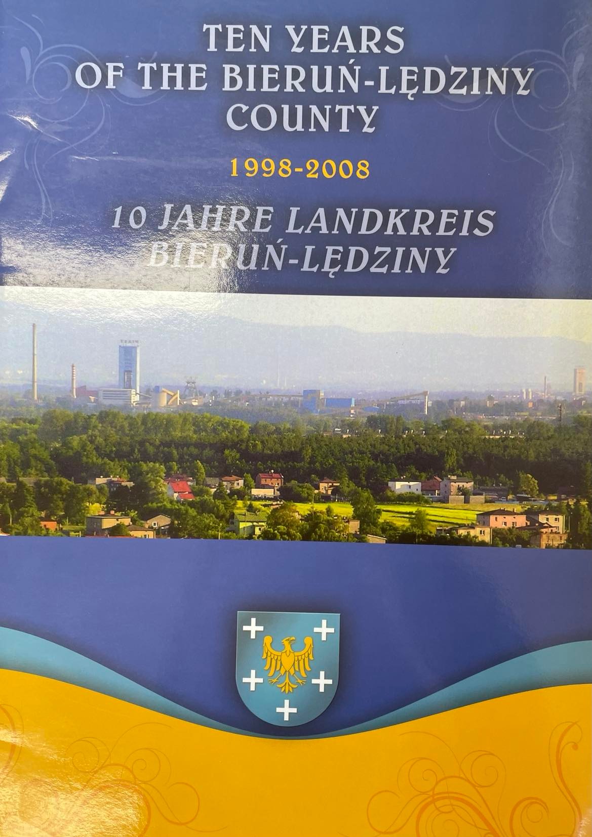 Folder wydany z okazji X-lecia Powiatu Bieruńsko-Lędzińskiego. Folder obejmujący omówienie działań w okresie 10 lat, od utworzenia w 1998 roku powiatu, starostwa powiatowego w Bieruniu. Folder w angielsko-niemieckiej wersji.