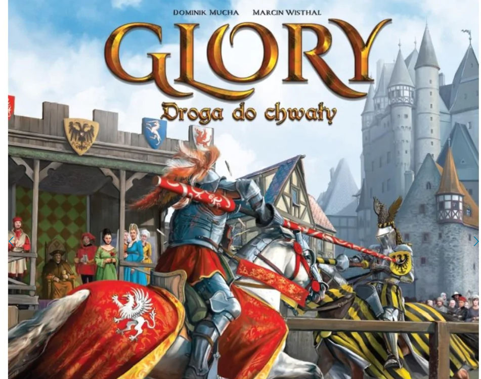 Glory: Droga do Chwały gra planszowa - Opole : Strategos Games 2021 - 1 gra ( 1 Dwustronna Plansza Turniejowa 4 Plansze Graczy 36 Kości 4 Znaczniki Chwały 1 Znacznik Fazy 28 Żetonów Siły 17 Żetonów Prestiżu 7 Żetonów Modyfikatorów Ataku 3 Żetony Wyników Rzutu 1 Żeton Modyfikacji Prestiżu 24 Żetony Monet 20 Żetonów Wiary 8 Żetonów Przewagi 24 Pionki 1 Plansza Główna 16 Żetonów Herbów 4 Żetony Dodatkowych Punktów Chwały 1 Instrukcja 48 Żetonów Sojuszników 16 Żetonów Relikwii 32 Żetony Rycerzy 4 Żetony Nagród Turniejowych 13 Kart Trybu Solo 26 Kart Romansu 19 Kart Targu 29 Kart Wyzwań 16 Kart Ekwipunku 14 Kart Tytułów 12 Kart Wydarzeń 12 Kart Postaci 12 Kart Turnieju) w pudełku 29x21x7cm