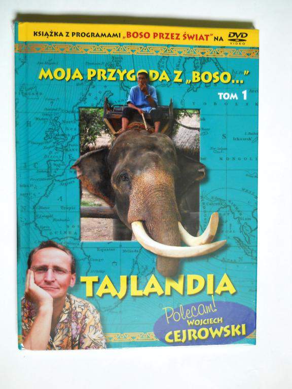 Moja przygoda z „Boso...” to kolekcja 27 książek autorstwa Sławomira Makaruka (Makarona), organizatora wypraw. Do każdego tomu dołączona jest płyta DVD z najpopularniejszym w Polsce, telewizyjnym programem podróżniczym „Wojciech Cejrowski. Boso przez świat”. To niemal sto barwnych reportaży z różnych zakątków świata autorstwa charyzmatycznego Wojciecha Cejrowskiego. Naszą kolekcję zaczynamy od Tajlandii, bardzo popularnej wśród polskich turystów, zwłaszcza zimą. To najlepszy czas na odwiedzenie tego kraju. Jest tam wtedy ciepło i sucho. Razem z panem Wc zwiedzimy zatłoczony Bangkok, gdzie każdy centymetr przestrzeni musi być maksymalnie zagospodarowany - najlepiej pod bazar dla turystów. Ale w mieście nie zabawimy długo. Szybko udamy się do dżungli, gdzie pracują słonie. Polznanie tyj ogromnych, majestatycznych i niezwykle silnych zwierząt to główny cel wyprawy ekipy pana WC. Zobaczymy jak szkoli się słonia, jak się go dosiada i jak się nim kieruje. Zajrzymy też do menu tego zwierzęcia i poznamy zręczność słoniowej trąby.