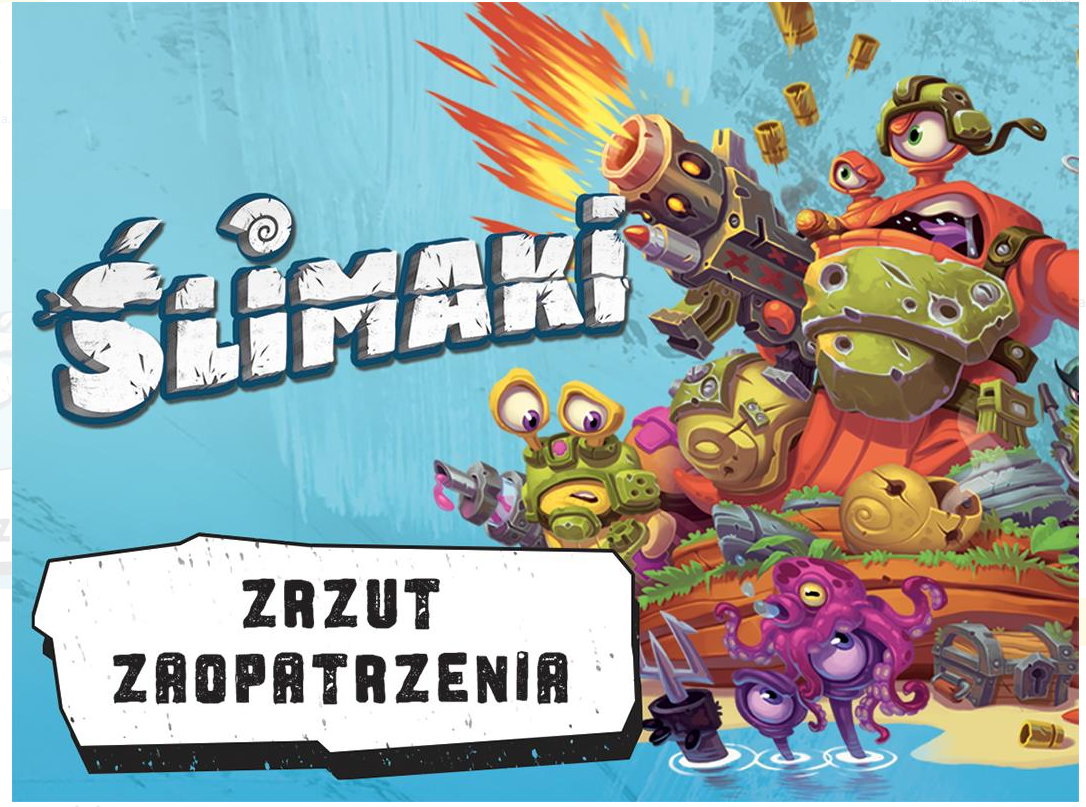 "Zrzut zaopatrzenia to pierwsze rozszerzenie do Ślimaków - niesamowicie zabawnej gry o strategicznych walkach między bojowo nastawionymi mięczakami. Zawiera 14 zupełnie nowych kart akcji arsenału, którymi zaskoczysz wrogów. Dodaj je do talii, a potem bezlitośnie zbombarduj pole bitwy Atomówką, posiekaj rywali na kawałki Mieczem lub użyj Teleportera, aby wysłać ich w miejsce, z którego długo nie wypełzną.