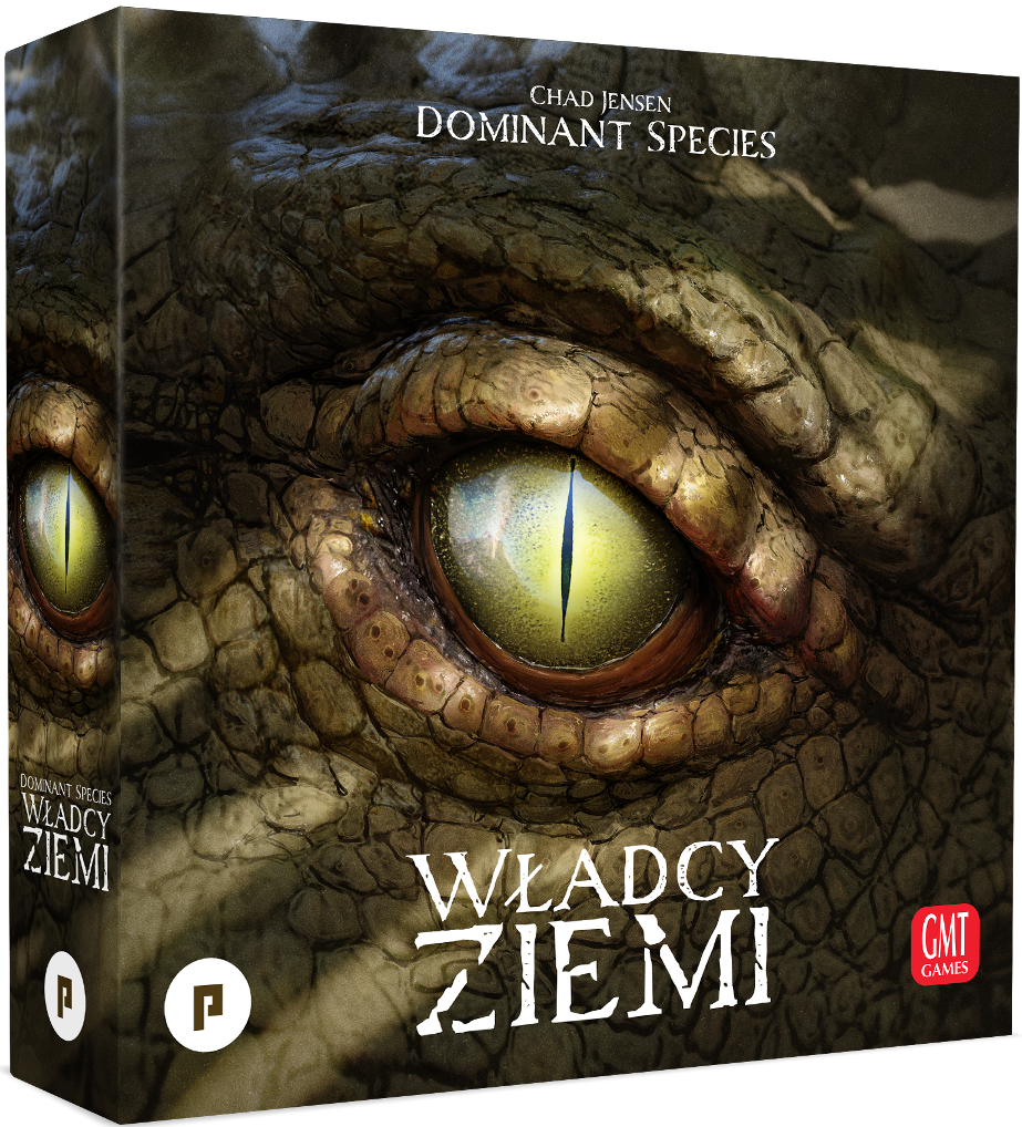Dominant Species: Władcy Ziemi projekt gry: Chad Jensen; ilustracje: Bartek Jędrzejewski, Chad Jensen, Rodger B. MacGowan, Chechu Nieto, Eric Williams (I), Tomek Zarucki. - Opole : Phalanx Games 2023. - 1 pudełko (duża, składana plansza 56 × 86 cm instrukcja 330 drewnianych kostek 66 drewnianych figurek zwierząt 60 drewnianych walców dwanaście kart gromady sześć kart pomocy siedem arkuszy żetonów 27 kart płócienny worek, instrukcja) : ilustracje ; 30x30x8 cm.
